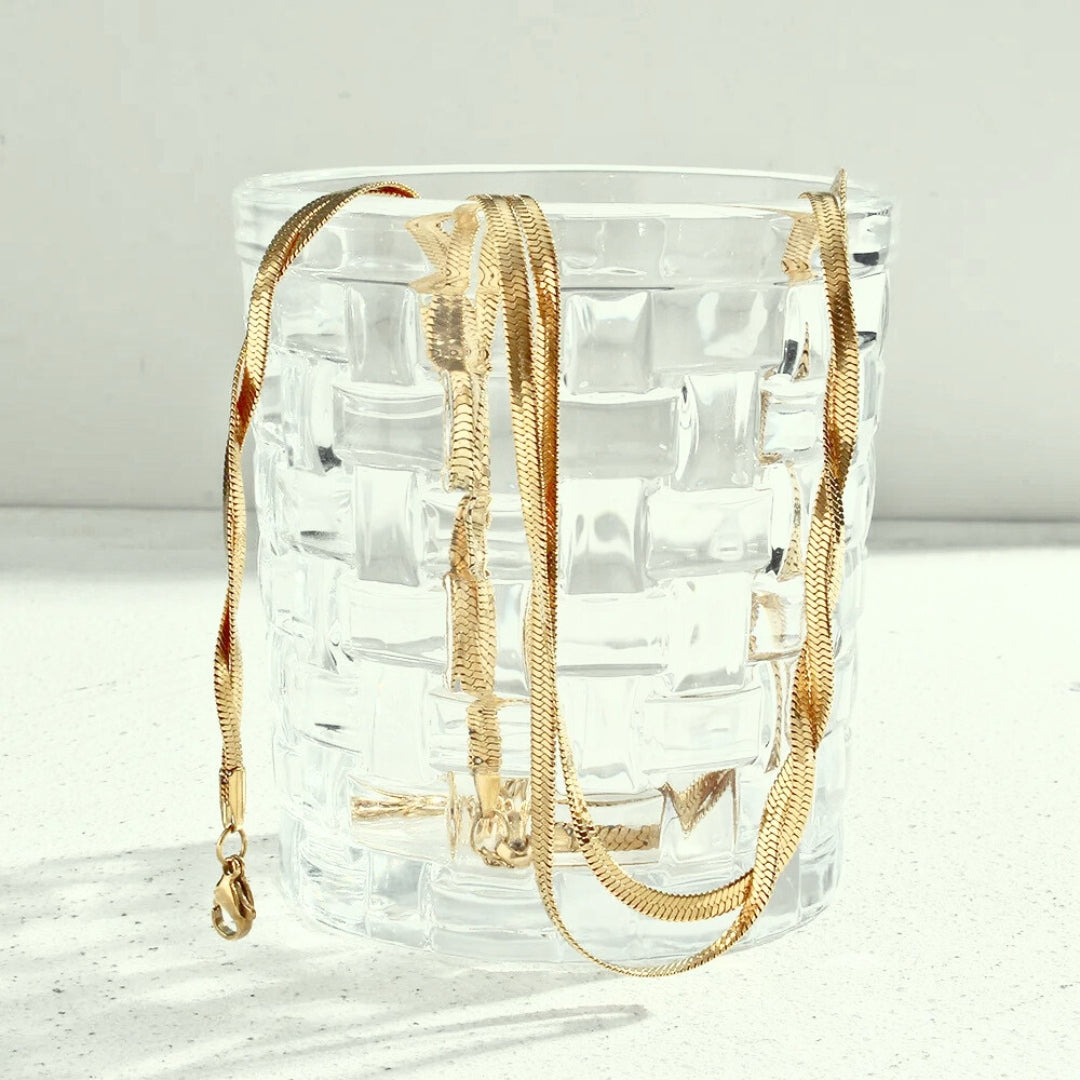 Das SANNA Schmuck-Set vereint zeitlose Eleganz mit moderner Raffinesse. Die kunstvoll geflochtene Fischgräten-Kette und das passende Armband strahlen eine luxuriöse Ästhetik aus, die jedes Outfit perfekt abrundet. Die feinen, ineinander verwobenen Glieder sorgen für einen einzigartigen Look, der sowohl minimalistisch als auch auffällig wirkt.